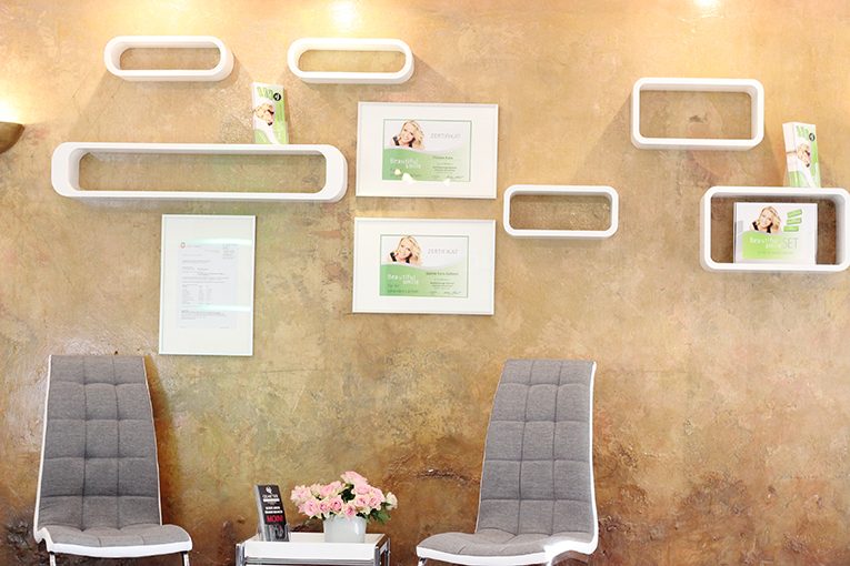 Das Beautiful Smile Center ist farblich in weiß und grün gehalten und versprüht eine entspannte Lounge-Atmosphäre, die an ein Wellness Studio erinnert. Ich kann mich also endgültig entspannen, beim Arzt sieht es angsteinflößender aus!