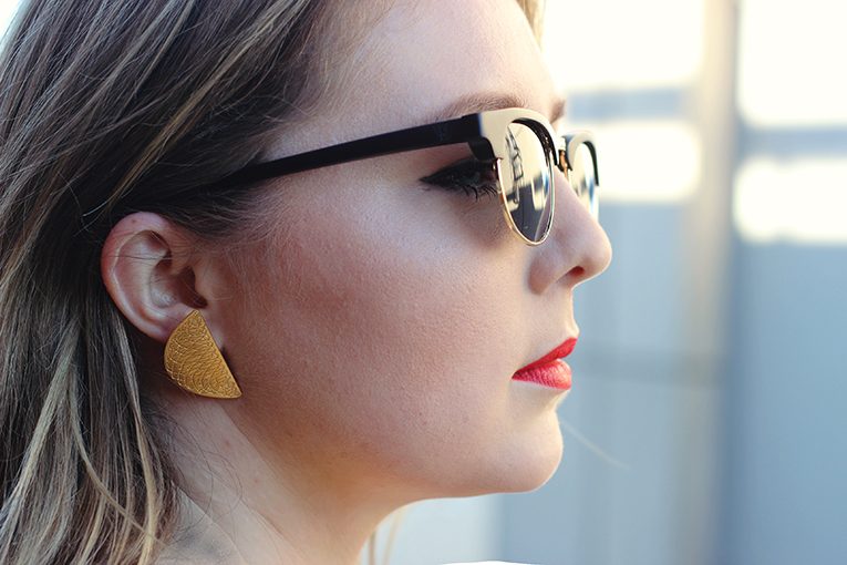 Ganz neu sind auch meine goldenen halbkreisförmigen Ohrringe von Inlace Jewelry. Die Berliner Designerin Stefanie Mittmann hatte mich vor einiger Zeit zur Blickfang Messe eingeladen, damit ihr mir ihre neue Kollektion anschaue und ich muss sagen, dass die Sachen mir wirklich gut gefielen. Die Ohrringe sind aus der Rolled [On] Kollektion, einer Weiterentwicklung ihrer ersten Kollektion „Lace Me“, bei der sie mit Klöppelspitze gearbeitet hat. In der aktuellen Kollektion wurde die Klöppelspitze in die Halbkreise bzw. Rechtecke gewalzt. Die Ohrringe und Ketten sind silber, gold oder rosé erhältlich.