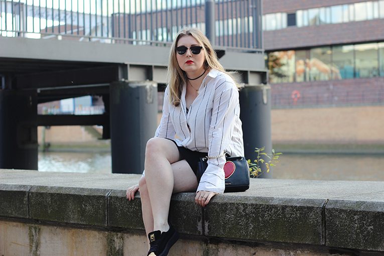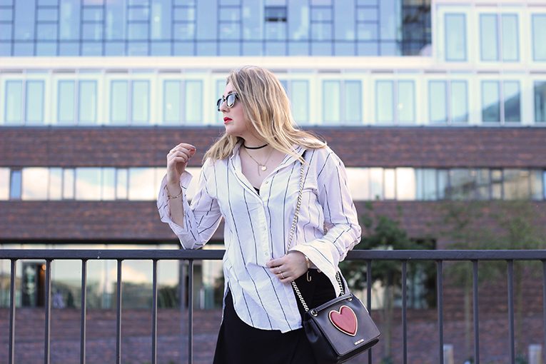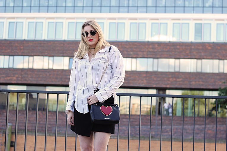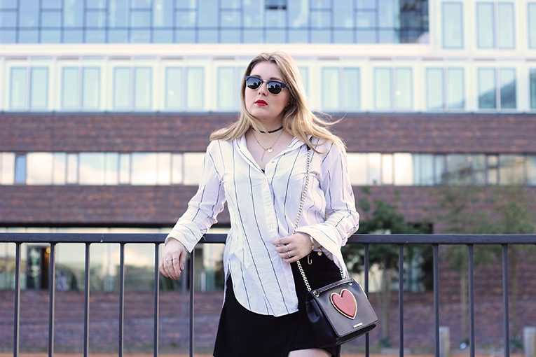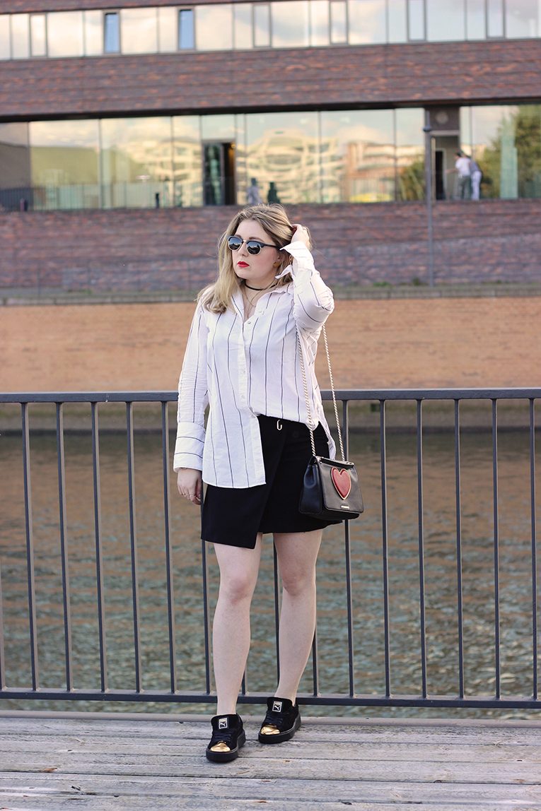 shirt: H&M | skirt: New Look | bag: Love Moschino | shoes: Puma * | sunnies: Woodlovers* |