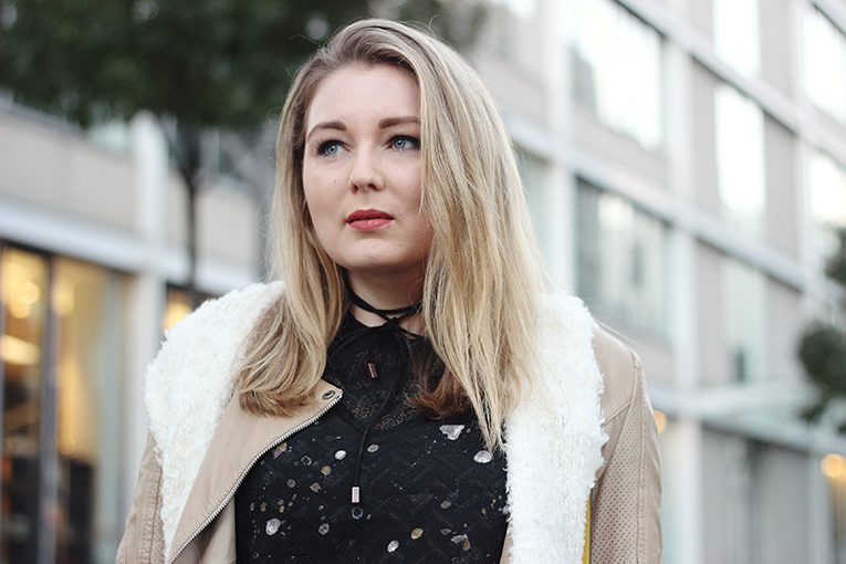 Die Lederjacke allein ist für die jetztigen Temperaturen nicht geeignet. Mit der gemütlichen Weste in Lammfelloptik von Garcia Jeans darüber, ist das kein Problem mehr. Die Weste hat sich in den letzten Wochen zum echten Allrounder für mich entwickelt. Ich trage sie über Blusen, Pullover, Kleider oder auch unter kurzen Mänteln und Bikerjacken, die mich anderenfalls nicht warm genug halten würden. Das ideale Kleidungsstück für den Herbst!