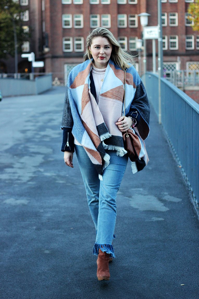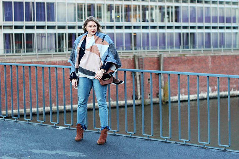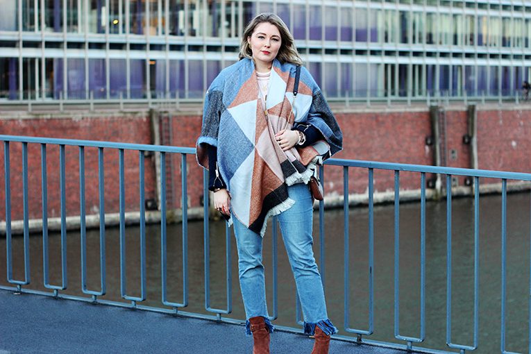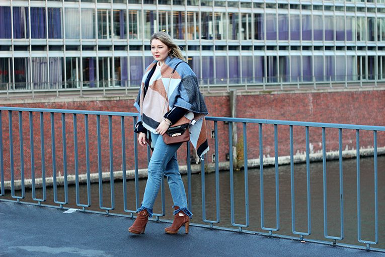 cape: Gerry Weber* | sweater: Gerry Weber* | jeans: H.I.S.* | necklace: No Gallery* | bag: Picard* | heels: H&M | jacket: Cubus | earrings: Inlace*