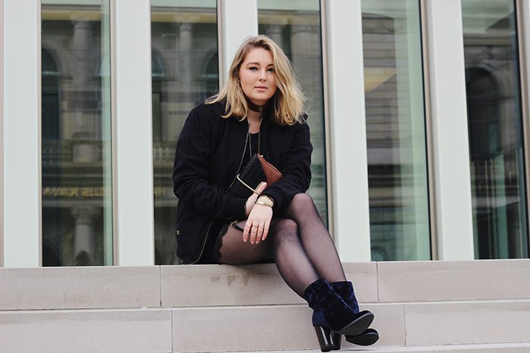 Ach cool, Samtkleid mit passenden Boots :D Sehr süß!