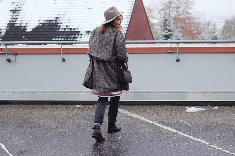 dress: Mango | coat: Garcia Jeans* | pants: Vero Moda | shoes: H&M | socks: S.Oliver* | bag: Zara | hat: Loevenich* | watch: Sheen*