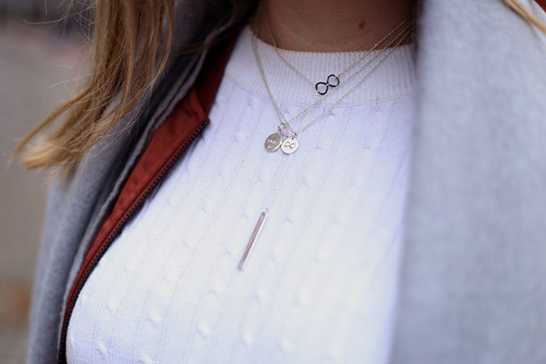 jacket: Gina Tricot* | sweater: Gina Tricot* | scarf: Gina Tricot* | shoes: Zalando | belt: VMP Gürtel* | pants: Zara | bag: Zara | glasses: Zara | watch: Sheen* | love ring: Tchibo*| necklaces: Bijou Brigitte*