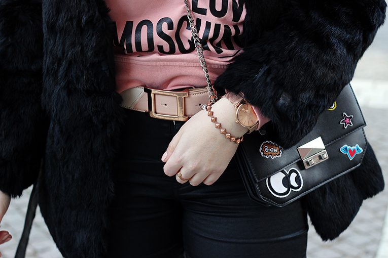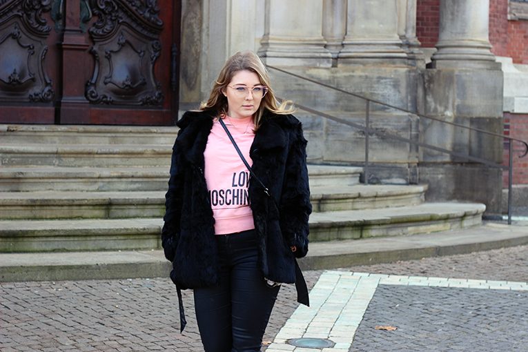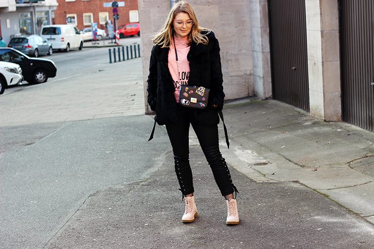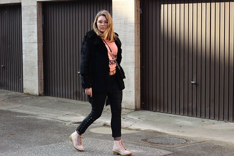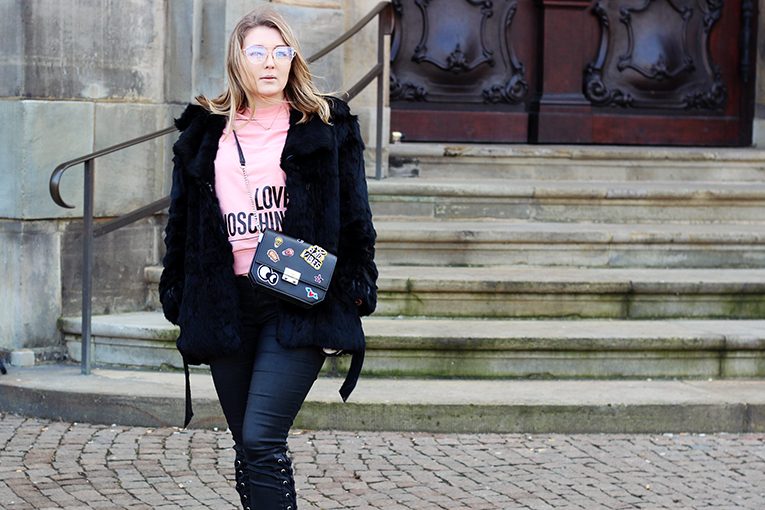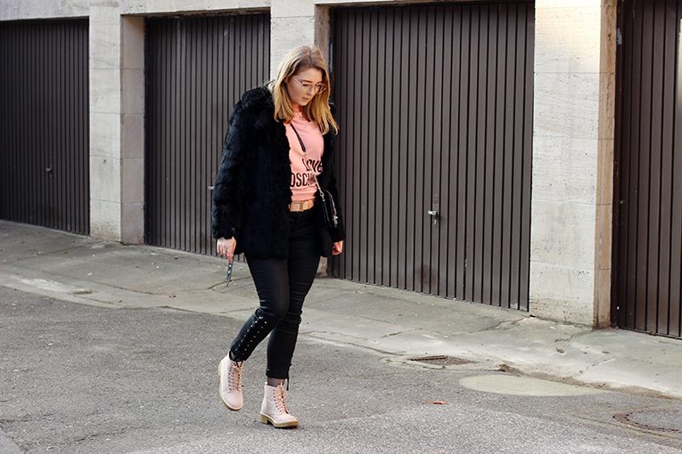 Kurzum: ich bin ich bin der Farbe vollends verfallen. Den Love Moschino Pullover habe ich mir daher selbst zu Weihnachten geschenkt. Die geschnürten Stiefel von H&M sind ein würdiger Ersatz für die rosa Timberland Boots, die seit 2 Jahren vergebens suche.
