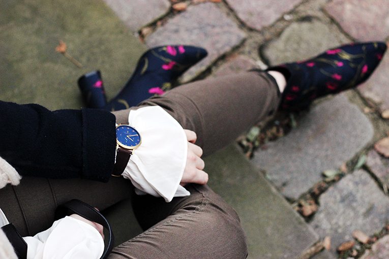 Weitaus weniger Probleme als geblümte Stiefeletten bereitet mir beim Styling meine Uhr von Lilienthal Berlin. Die Uhr ist nicht zu verspielt, hat jedoch einige liebevolle Details, die sie zu etwas besonderem machen. Was ich besonders an ihr mag, ist die Tatsache, dass die wandelbar ist. Mit wenigen Handgriffen kann man die Bänder auswechseln.