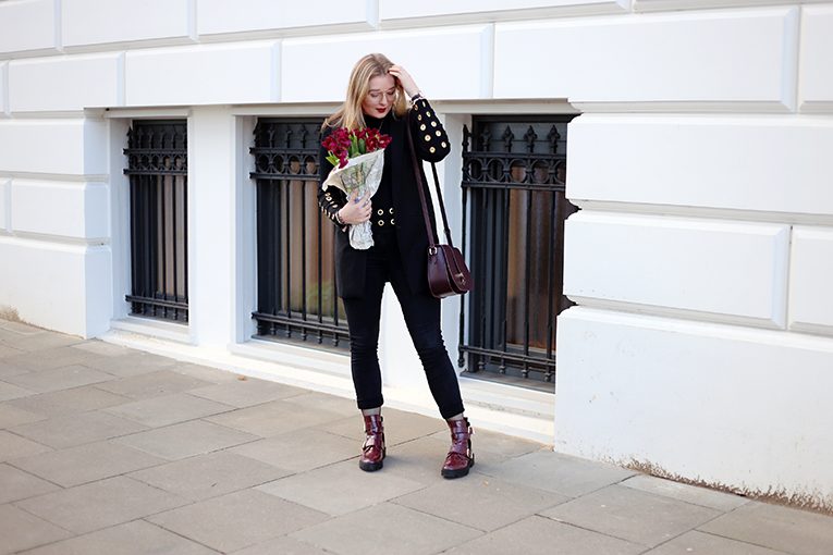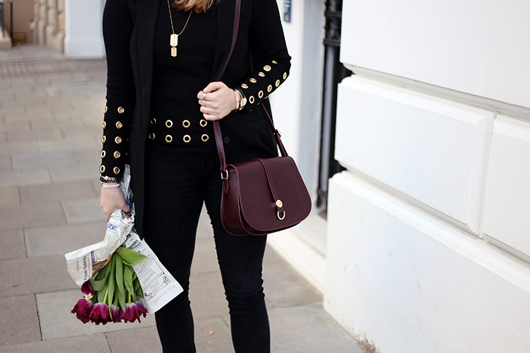 anthony vaccarello balanciaga lookalike dekorative nieten edgy style Eyelet eyelet pullover eyelet trend eyelets fashionblogger goldene eyelets lochnieten modeblogger nietentrend pitnerest tulpen