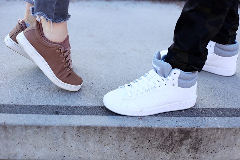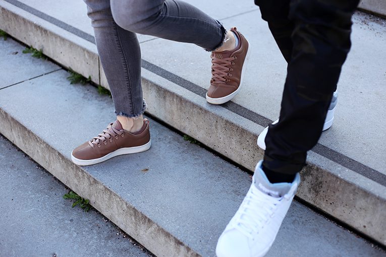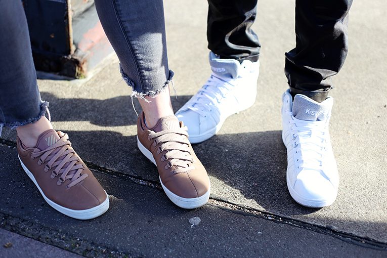 Wir tragen beide Sneaker von K-Swiss, welche farblich auf unsere Outfits abgestimmt sind, sich jedoch nicht in den Vordergrund drängen. Damit sind die Sneaker die ideale Ergänzung zu dem Military Look.