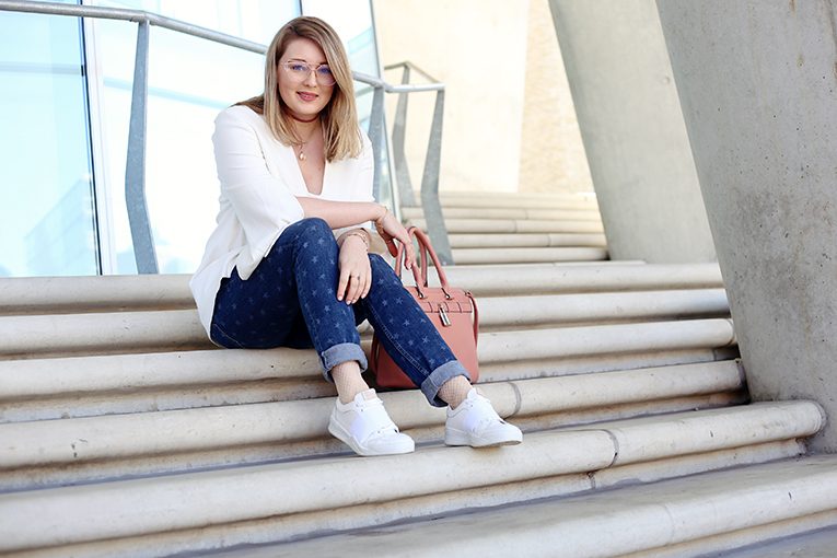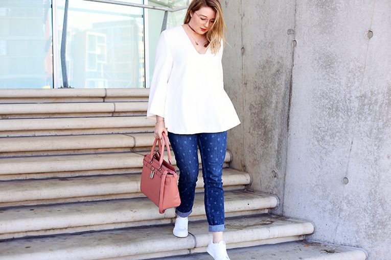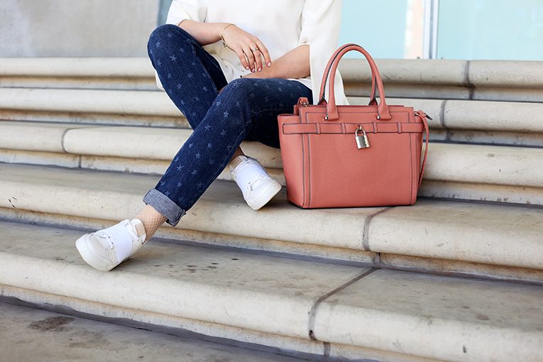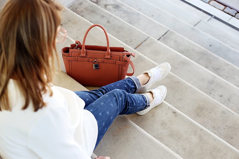 business bag jeans mit Sternen stars stern sternchen weiße sneaker