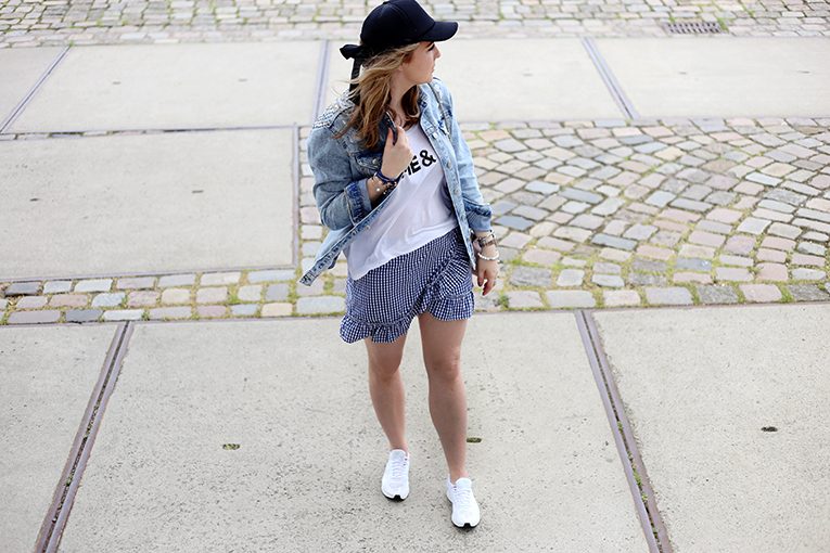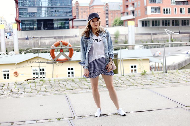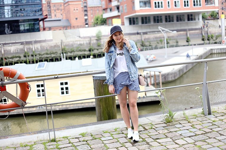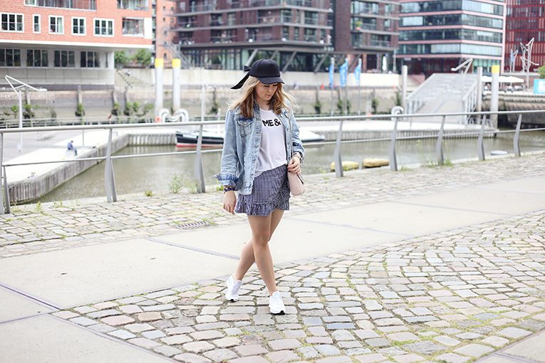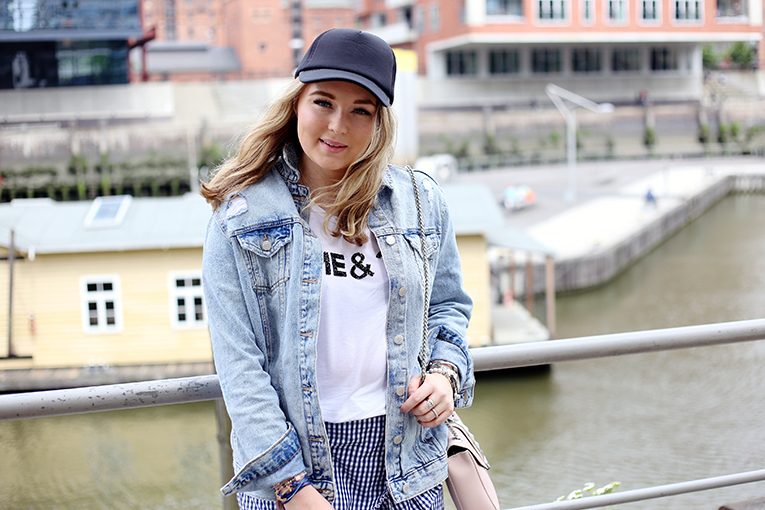 Die helle Jeansjacke ist von New Look und zur Zeit sogar im Sale. Das gleiche gilt übrigens für den Rock mit Vichymuster und Rüschenverzierung und die Cap mit Satinschleife. Beide Teile könnt ihr momentan für nur 9 € shoppen! Es lohnt sich wirklich dort mal nach Schnäppchen zu stöbern. Dort findet ihr auch den Kimono und die metallic Mules, die ich euch in diesem Beitrag gezeigt habe.