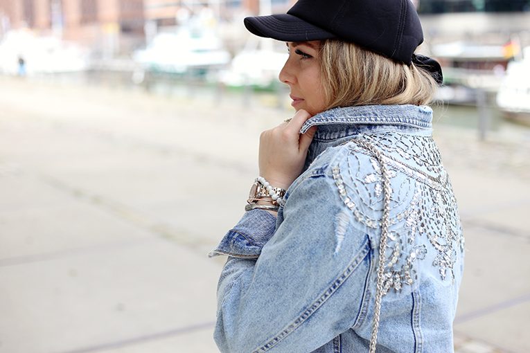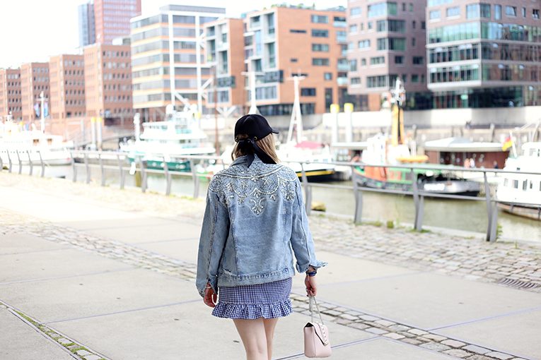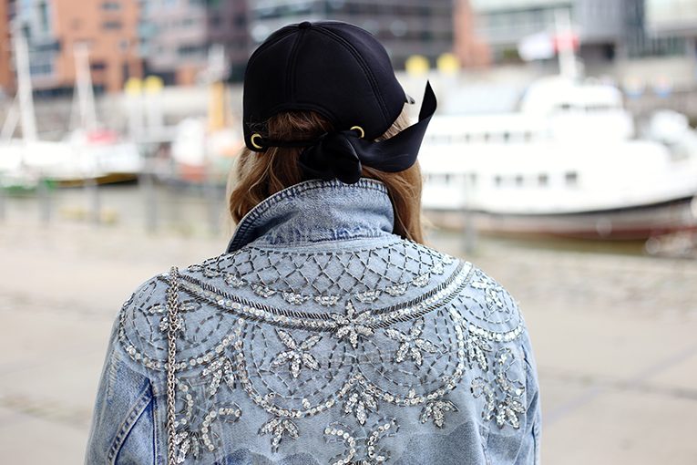 bestickte Jeansjacke blogger cap mit schleife denim jacke foot locker jeansjacke light denim nike flyknit pailetten verzierung rüschenrock vichy karo