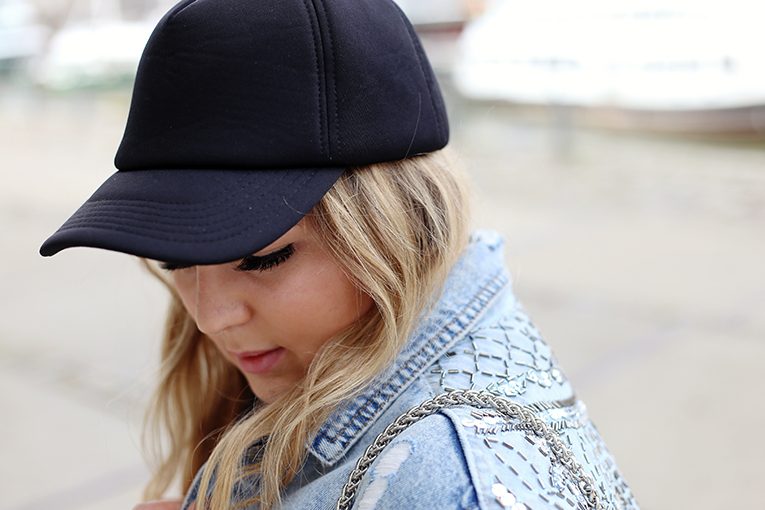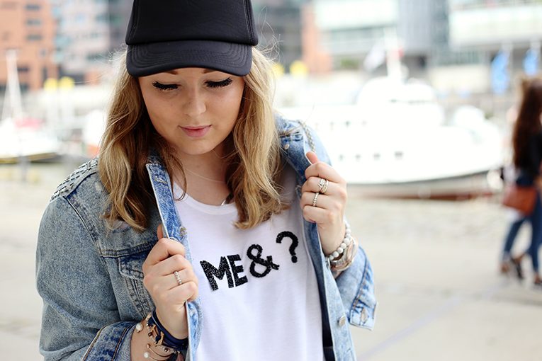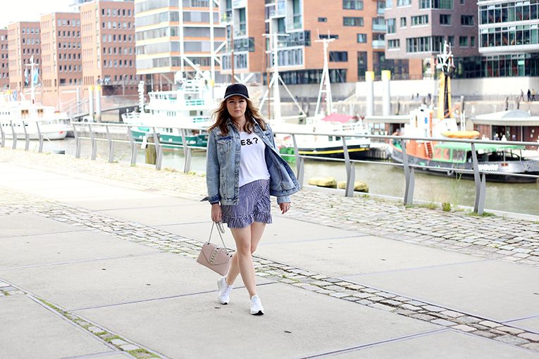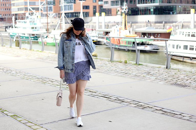 Jacke: New Look* (direct link) | Rock: New Look* (im SALE -> direkter Link ) | Cap: New Look* (im SALE -> direkter link) | Sneakers: Foot Locker* (direkter Link) | T-Shirt: Zara | Tasche: Gina Tricot* | Armband mit Anker: Hafenklunker*