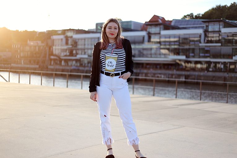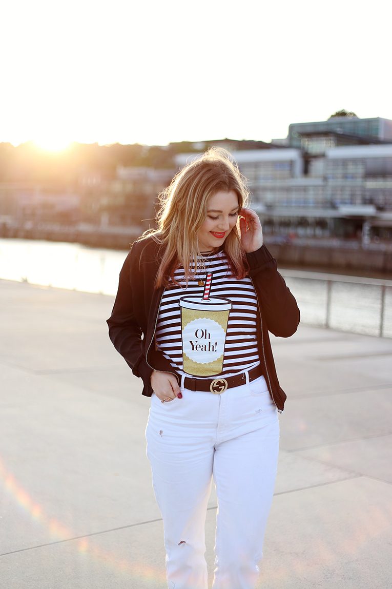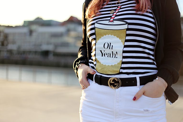 OVERDIVITY Gucci belt, Gucci Monogram Gürtel, Blogger, Stylelounge, schwarzes Leder, Bijou Brigitte Schmuck, Bangles, Armreifen www.overdivity.comOVERDIVITY Gucci belt, Gucci Monogram Gürtel, Blogger, Stylelounge, schwarzes Leder, Zara overdressed Jeans Hose mit Fransen, 3/4 Hose, Overdressed Statement Stickerei, Oh Yeah Shirt mti Streifen, Trinkflasche, Pop Art Shirt, Oh Yeah Berlin, Hamburg, Gina Tricot Satinjacke, Bomberjacke www.overdivity.com