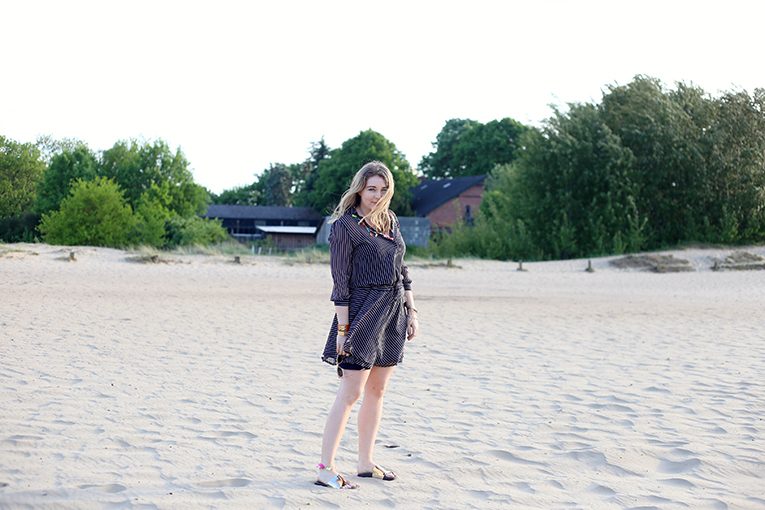 Adiletten gold Boberg Dünen festival fransenkette Metallic Lastchen reserved streifenkleid