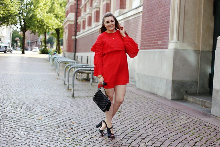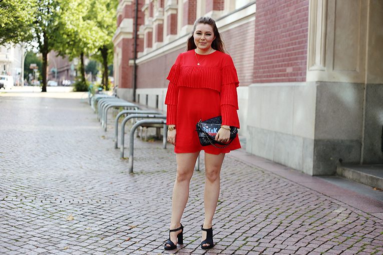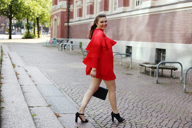 Ein passendes Outfit habe ich mir auch schon überlegt. Bei Tango denke ich immer an rote Kleider und so habe ich dieses Kleidchen von Boohoo mit Faltenärmeln auserkoren und schon mal für euch abfotografiert.