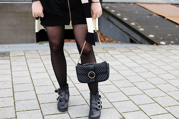 Im Winter müssen wir Dank Strumpfhosen auch nicht auf Kleider oder Röcke verzichten. Ich mag es besonders gerne, wenn die eine gemusterte Strumpfhose zu Overknee Stiefeln kombiniert wird (so wie ich es hier trage). Ein schlichter Look wird durch eine Netzstrumpfhose direkt ein wenig interessanter.