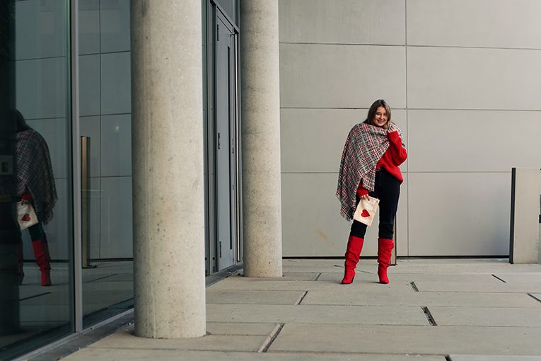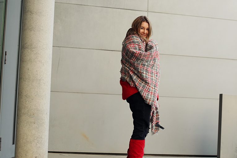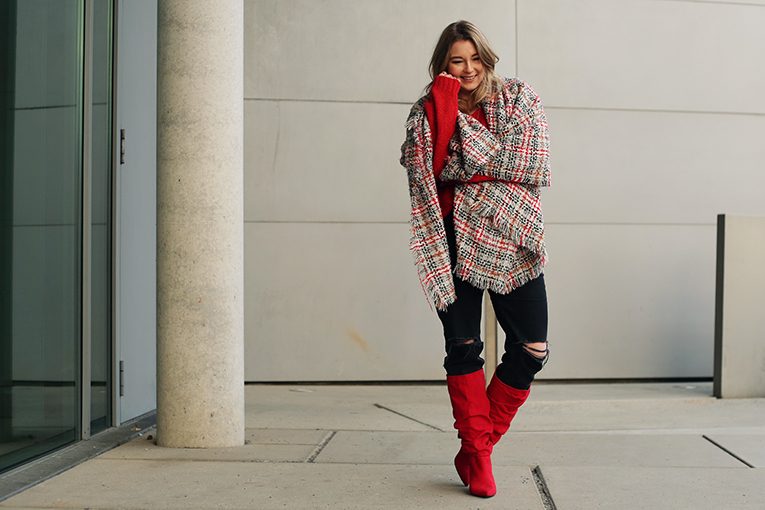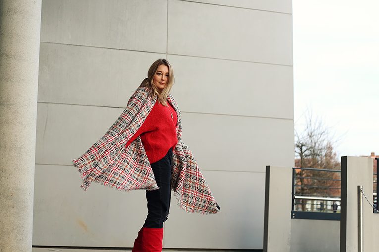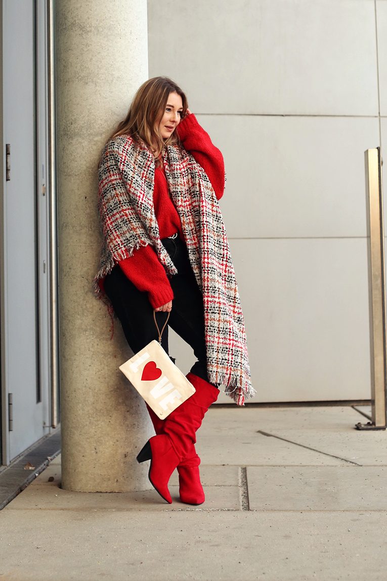 boucle schal pantone rot rote stiefel signalfarbe trendfarbe 2018 trendfarbe rot