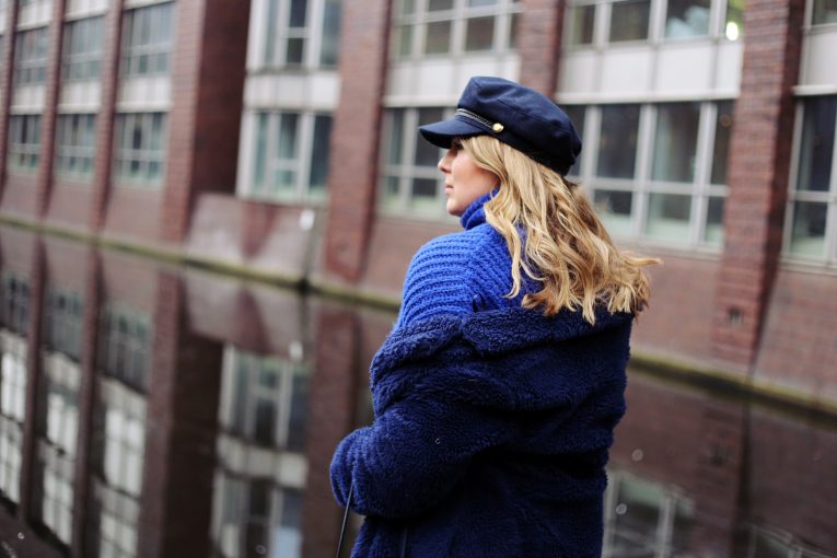 Umso länger kann ich mich jedoch an meinem neuen Lieblingsmantel erfreuen: einem blauen Teddyfell Mantel. Teddy Coats sind schon seit einiger Zeit angesagt. Vor allem in beige war er oft auf Instagram zu sehen. Kein Wunder, dass die Mäntel aus Teddy Fleece so die Runde gemacht haben: sie sind stylisch, bequem und geben einem das Gefühl mit einer kuscheligen Bettdecke unterwegs zu sein.