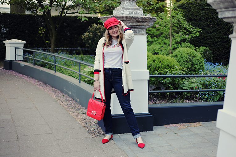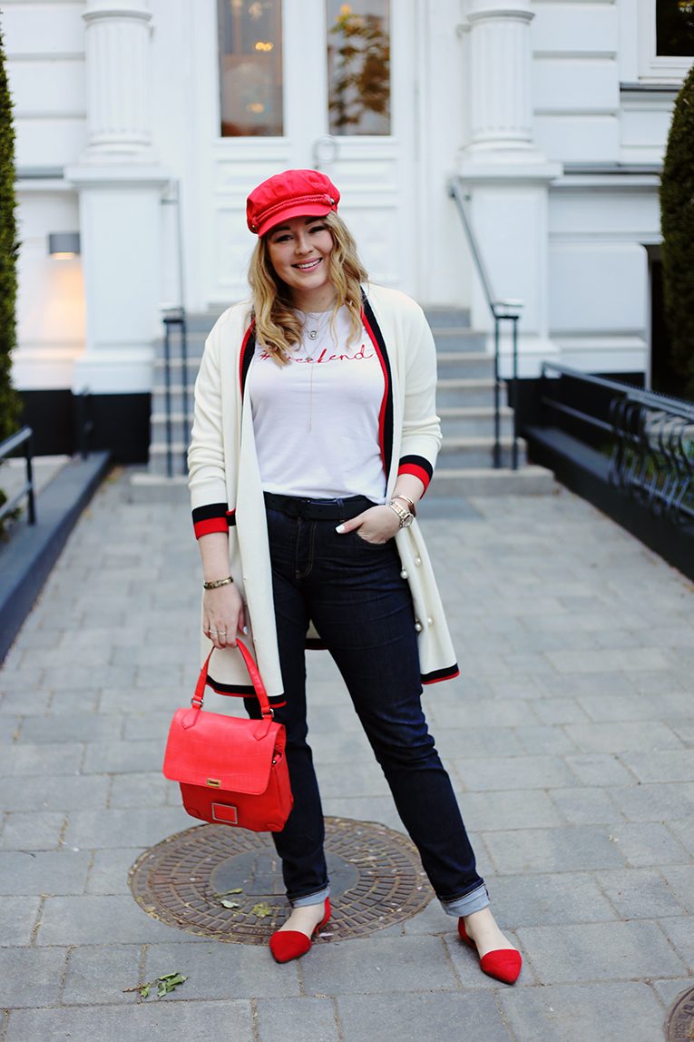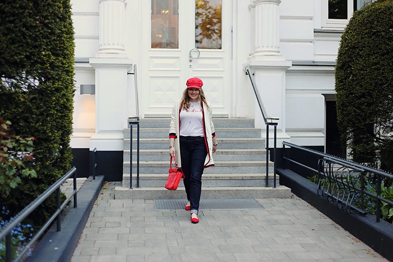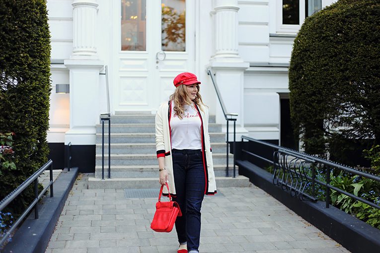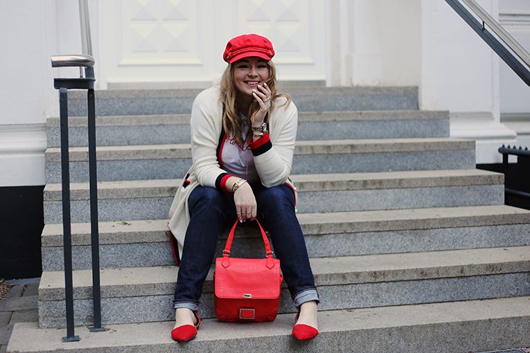 OVERDIVITY Roter Seemanshut, Baker boy Hut, rote Mütze, Schiffermütze, Hamburg, Winterhude, Modebloggerin, Fashionblog, Marc Jacobs Tasche rot, Red bag, Karporal Jeans, Straight Jeans www.overdivity.com