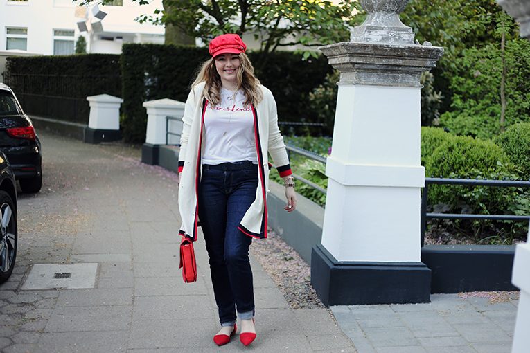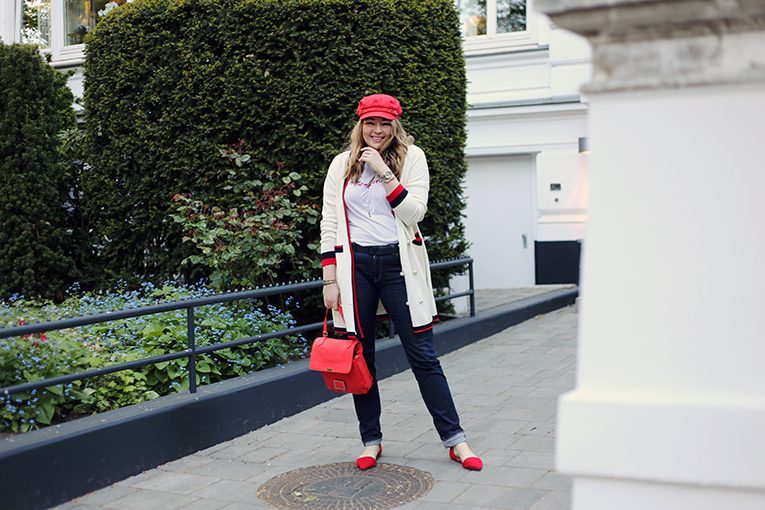 In letzter Zeit mag ich die Farbkombination aus weiß, rot und blau sehr gerne. Wie schon in diesem Beitrag, habe ich mich auch bei diesem Outfit für diese eher maritimen Farben entschieden.