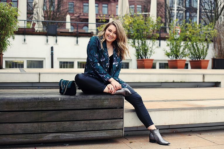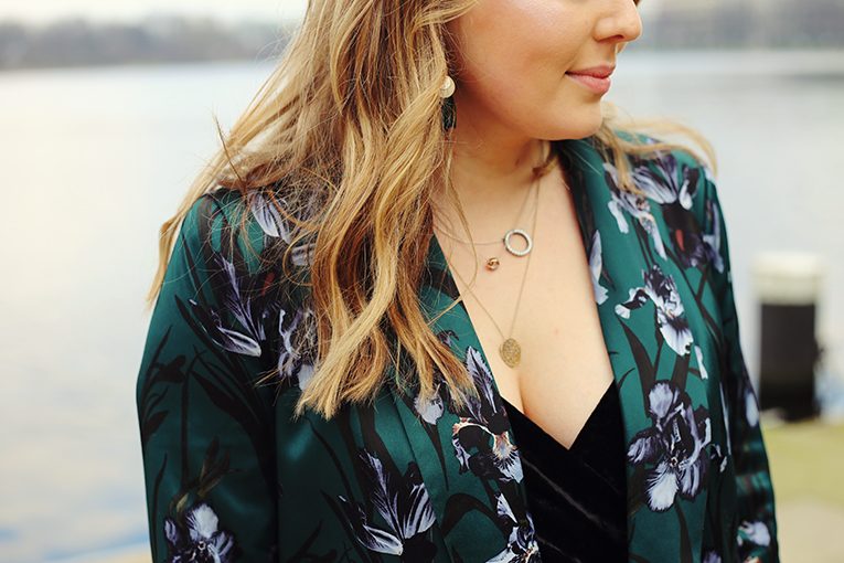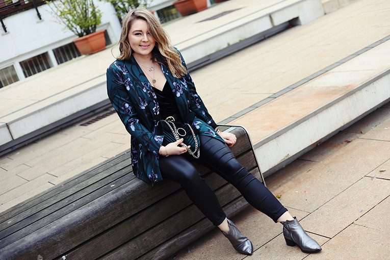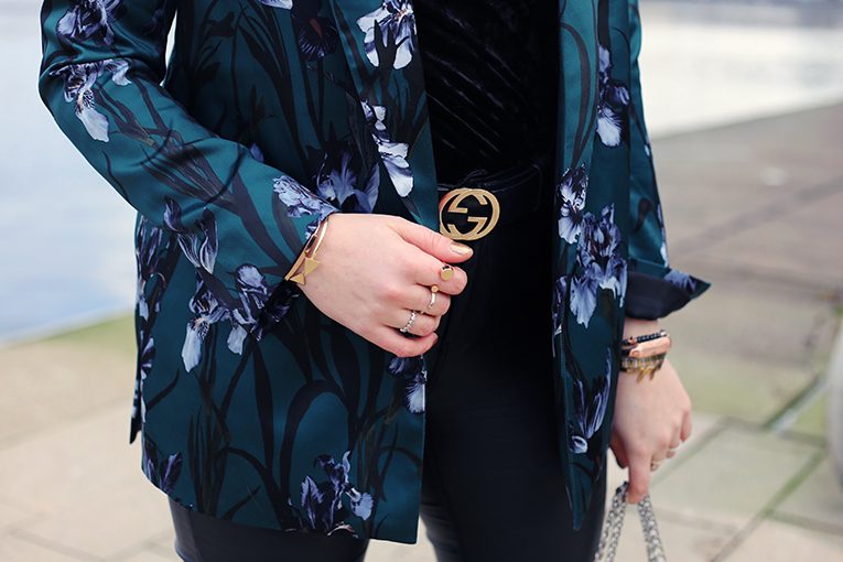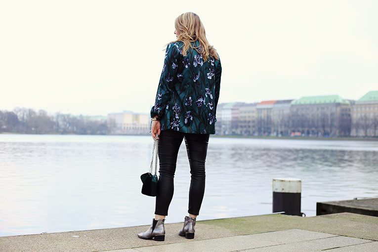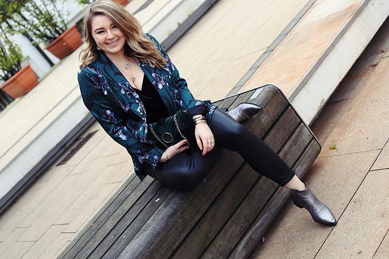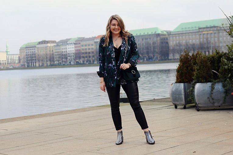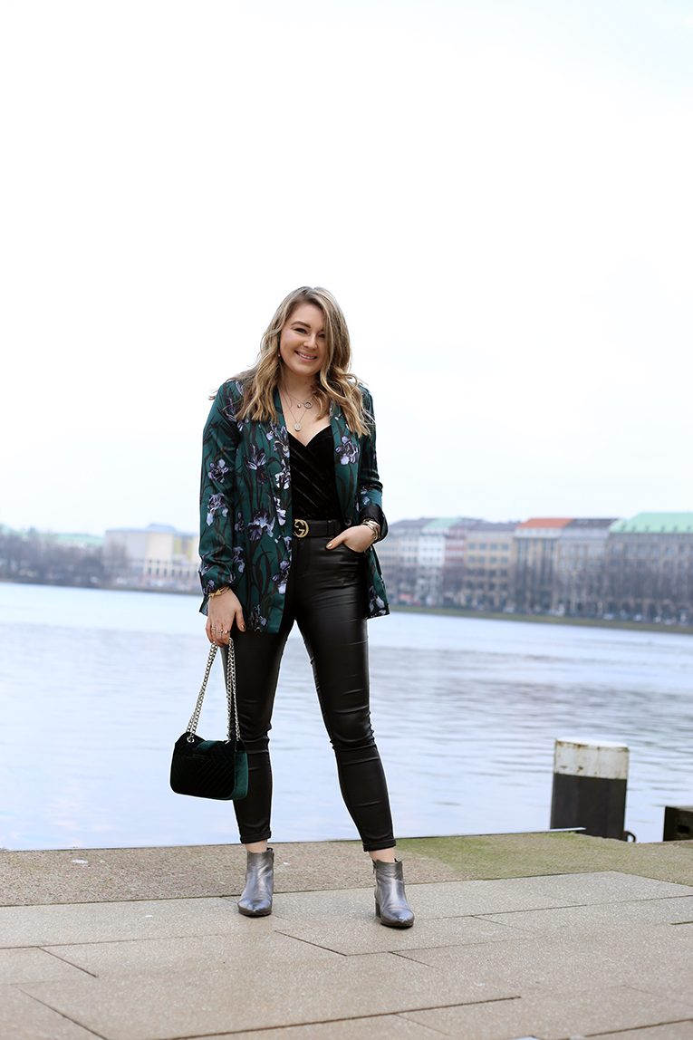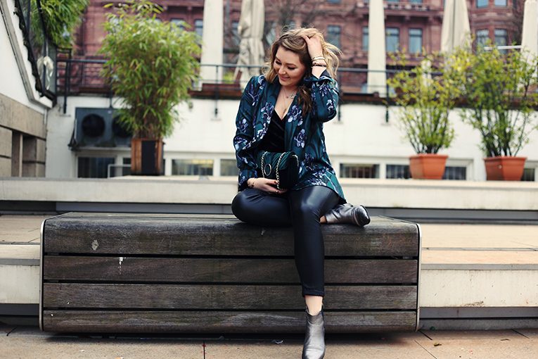 Heute zeige ich euch einen meiner Lieblingslooks, den man je nach Anlass ganz einfach up- oder downdressen kann. Die Hose in Lederoptik ist bildet das Basic. Mit Samtbody und geblümten Blazer bin ich gut ausgerüstet für einen Mädelsabend.