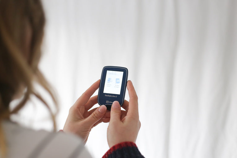 Die Messung mit dem FreeStyle Libre ist wesentlich schneller. Ich brauche das Lesegerät nur für eine Sekunde an den Sensor zu halten. Dafür muss ich nicht einmal meine Kleidung ausziehen. Das Lesegerät kann die Werte auch durch Pullover und Jacken hindurch auslesen.